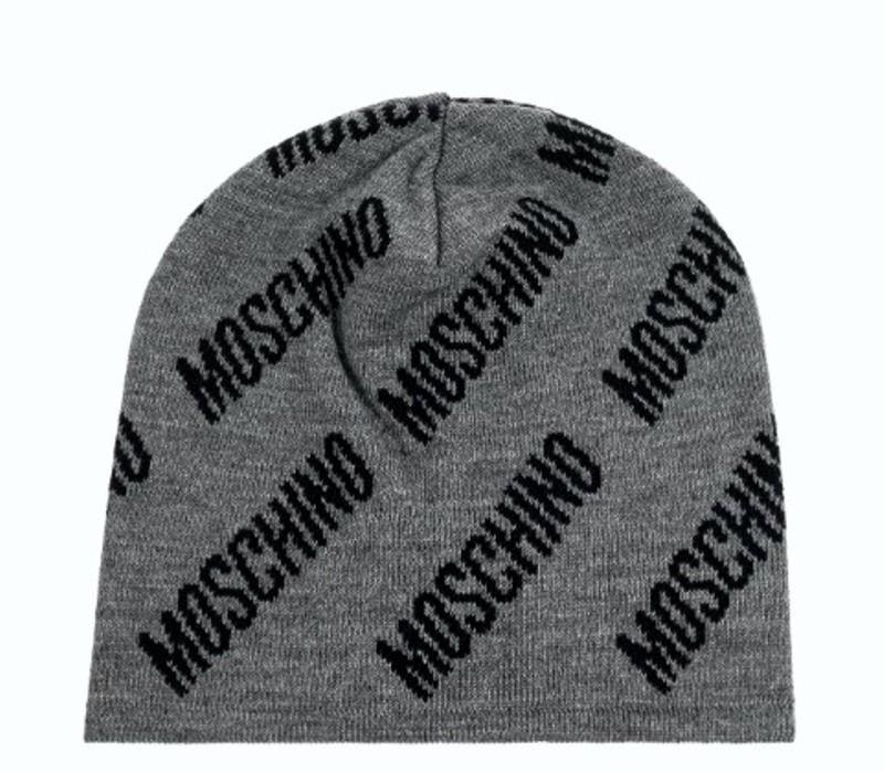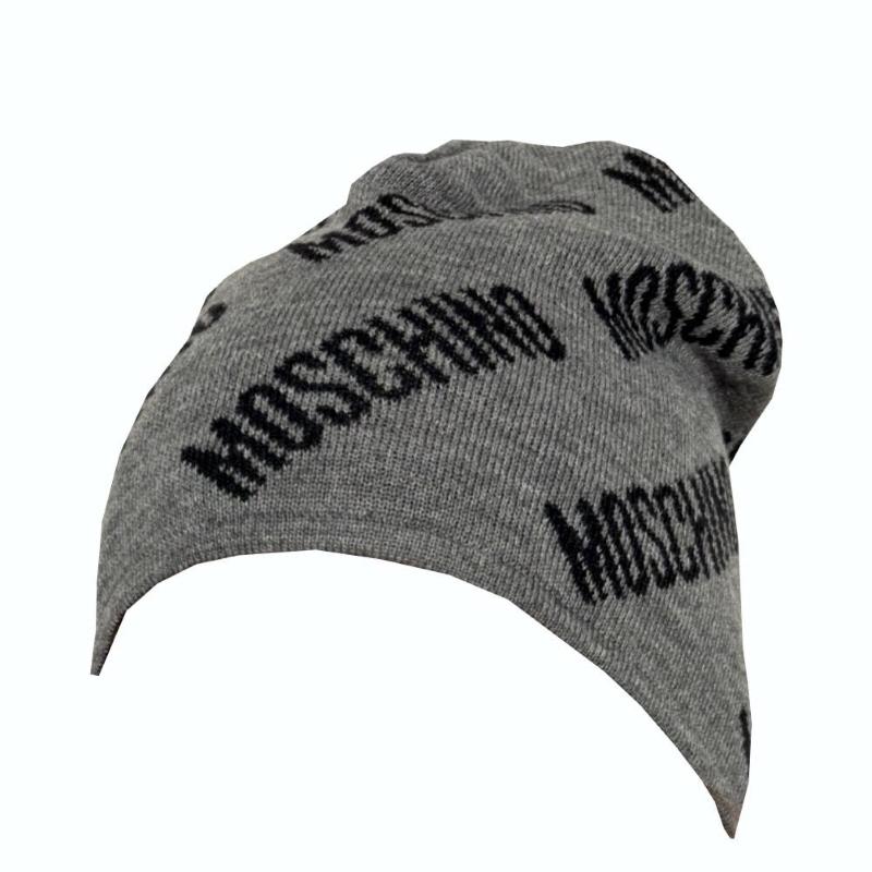 Moschino grey Beanie in Wool and Acrylic Muti Logo (One Size - Grey)
