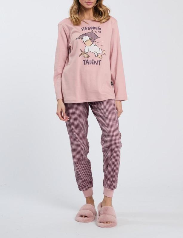 Women_s Long Pajamas Happy People -Sleeping Talent-s (S-42/EU.36 - Pink)